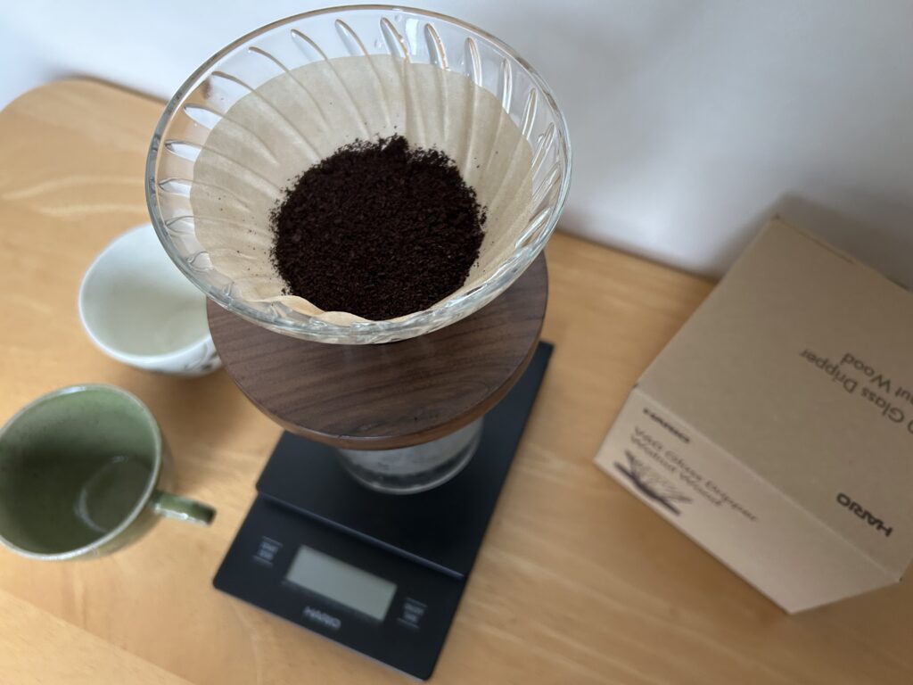 透明感のある耐熱ガラスと、温かみのあるオリーブウッドホルダーが美しく調和したハリオV60透過ドリッパー オリーブウッド。ここでは、実際に使用して感じたデザインや使い心地などを、写真と一緒に詳しくレビューしていきます。