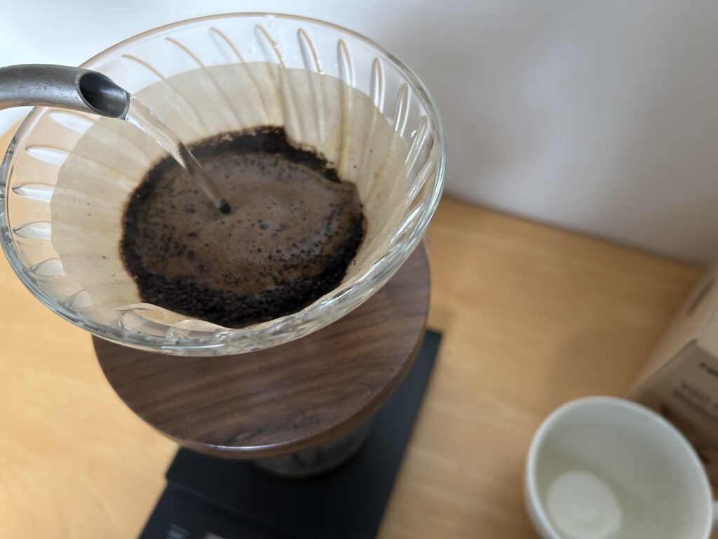 実際にハリオV60透過ドリッパー オリーブウッドでコーヒーを淹れてみると、湯の流れがスムーズで、抽出コントロールがしやすいのが印象的です。