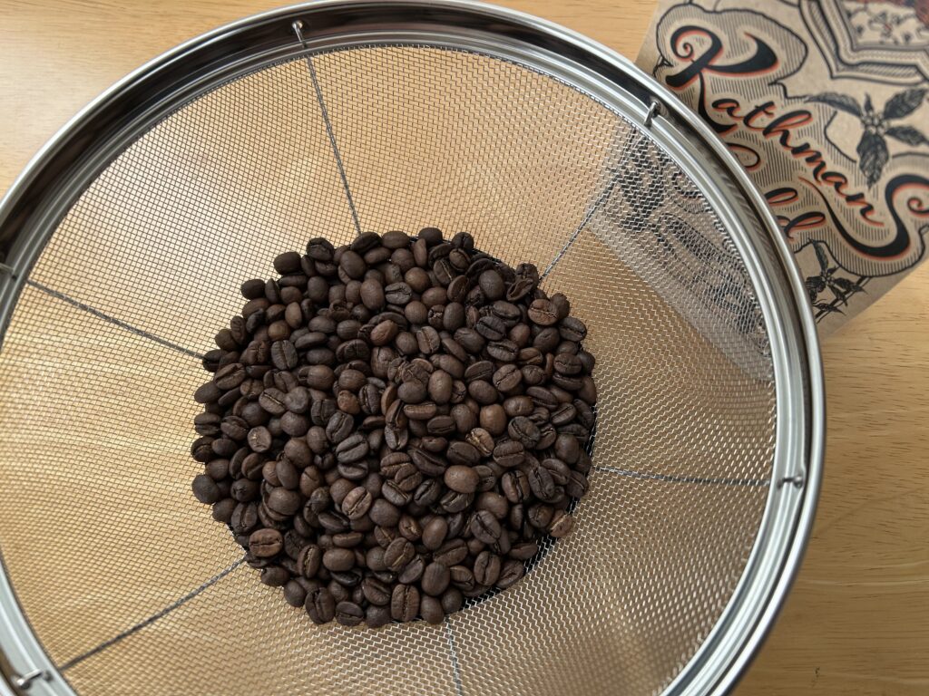 まずは、豆の状態から。袋を開けてみると、焙煎ムラは少なく、粒の大きさも比較的そろっている印象です。中煎りらしい落ち着いた色合いで、極端に浅い豆や深い豆が混ざっている感じはありません。